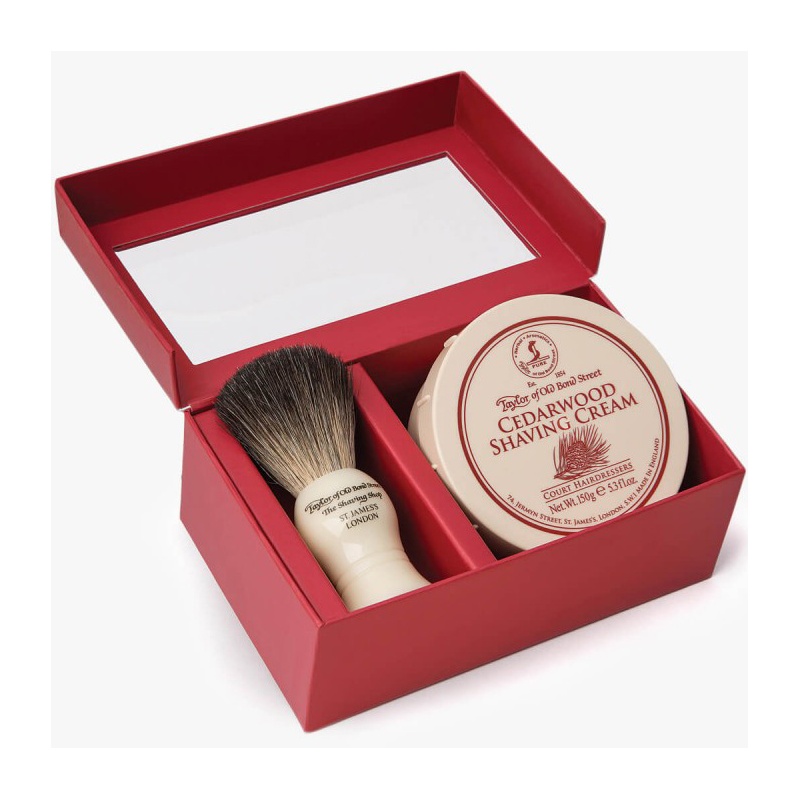 For gentlemen who enjoy a strong woody and sweet aroma. This gift set contains a pure badger shaving brush and Cedarwood shaving cream bowl (150g).