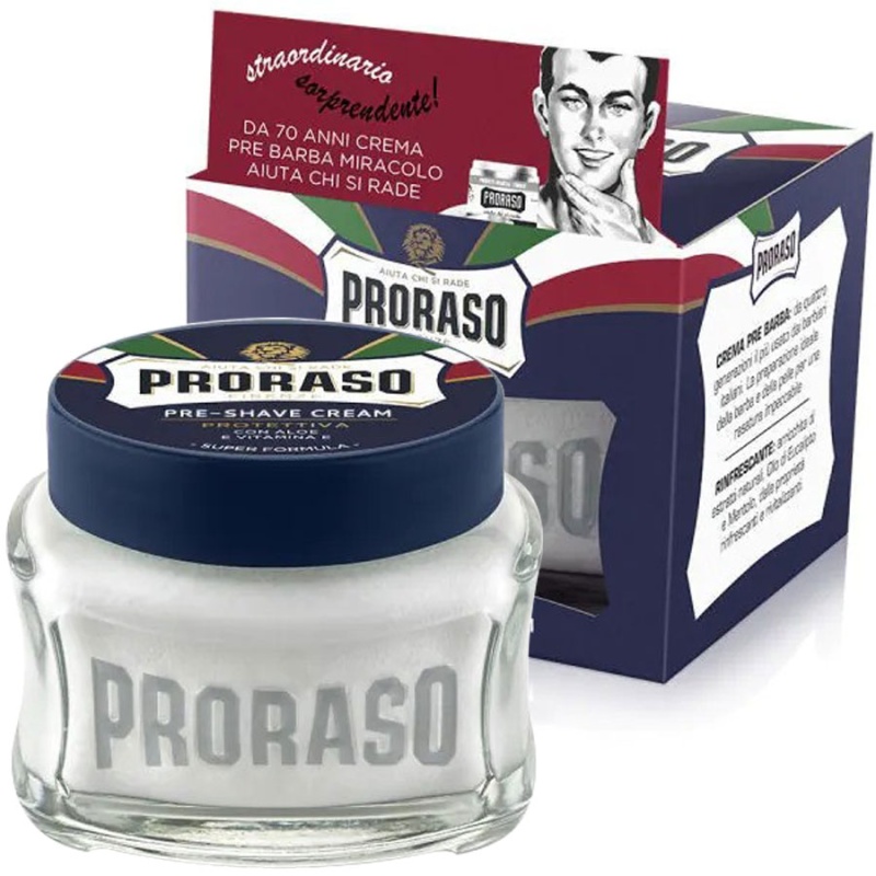 Proraso raseerimiseelne / järgne kreem pehmendab ning kosutab nahka. Niisutavate ja pehmendavate koostisosade ning aaloeekstrakti ja E-vitamiiniga rikastatud Proraso habemeajamiseelse kreemi kaitsev variant on loodud selleks, et pehmendada habemekarvu ja kaitsta nende all olevat nahka raseerimise ajal.